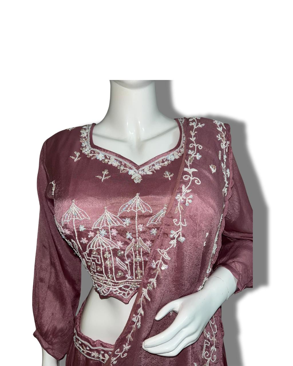 Step into effortless grace with our Pure Fabric Draping Lehenga, a masterpiece crafted for the modern woman who loves tradition with a fashionable twist. This stunning draped style lehenga offers a graceful flowing silhouette, giving you a pre-styled, ready-to-wear look without the hassle of pleating or setting.